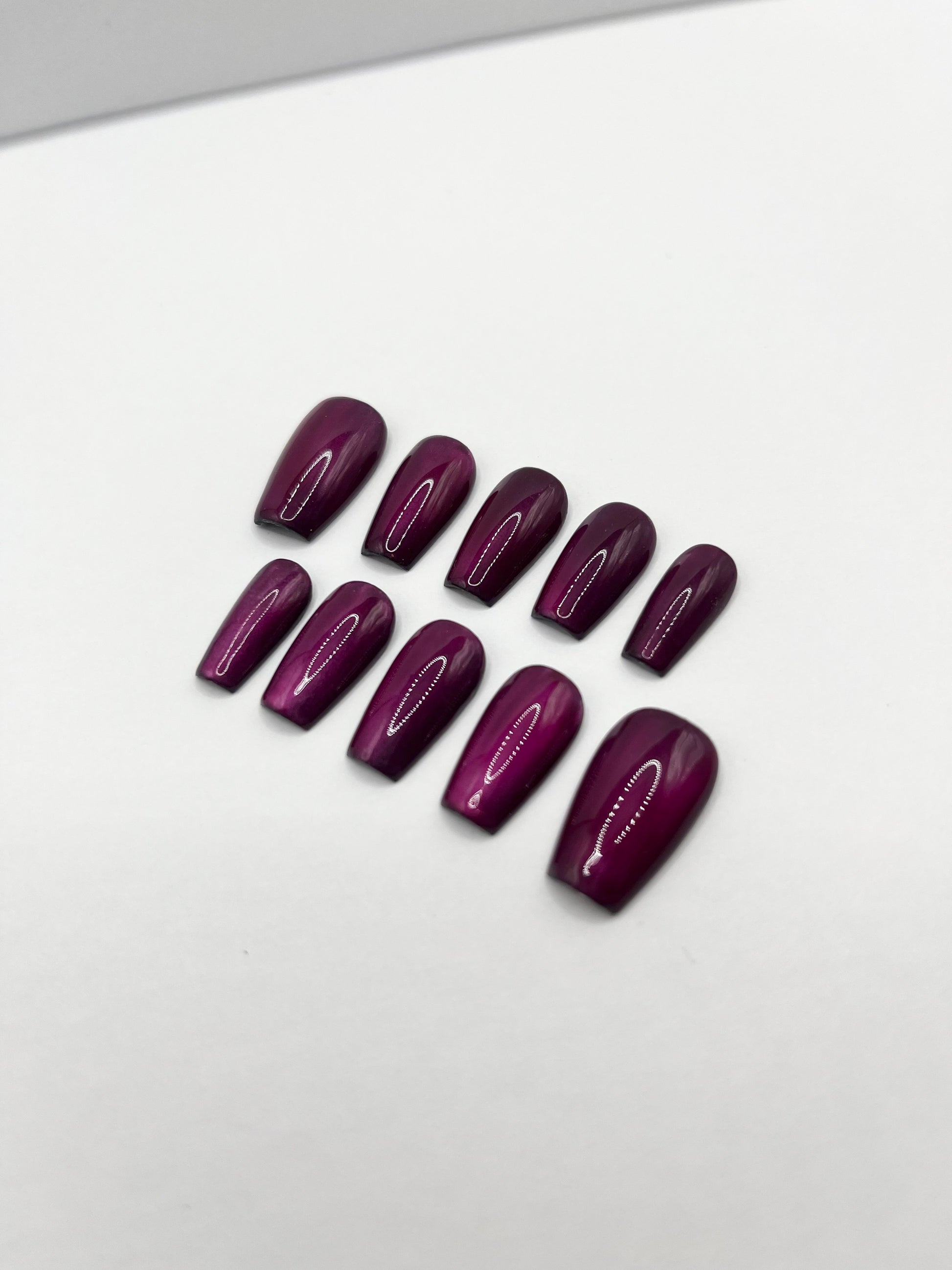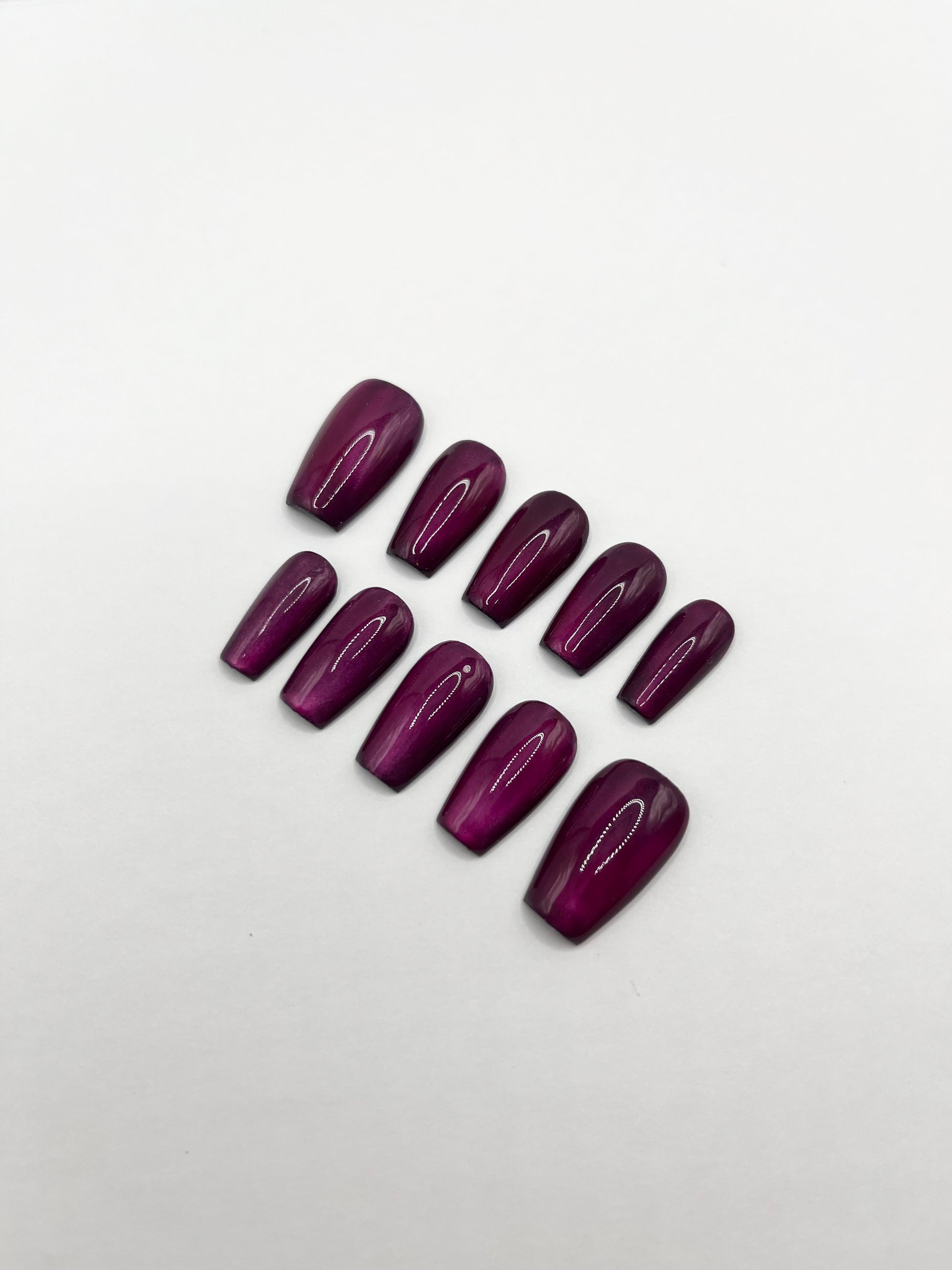 A magnetic fusion of deep berry and black, kissed with a reflective cat eye finish. Dark, dimensional, and made to turn heads.