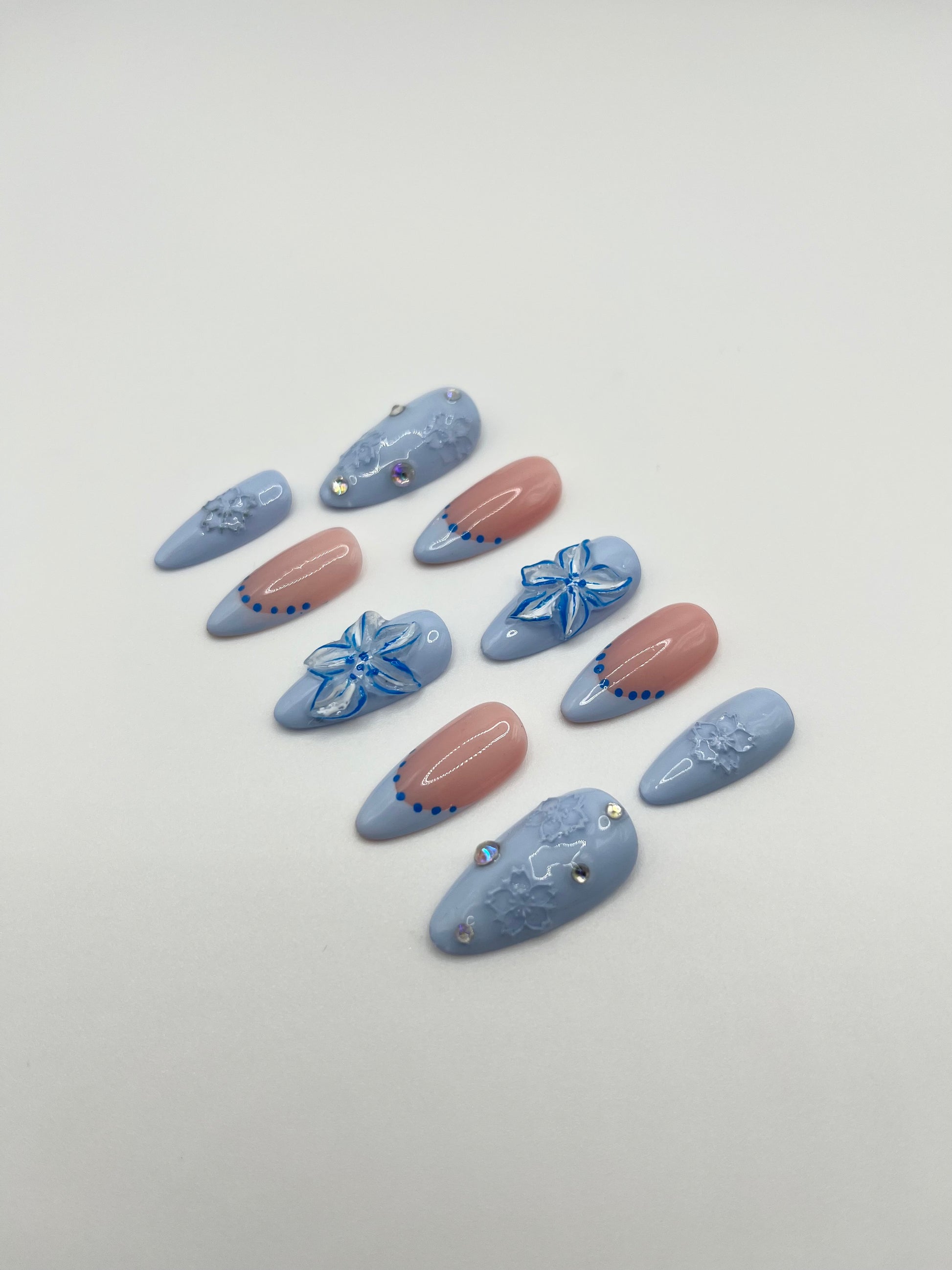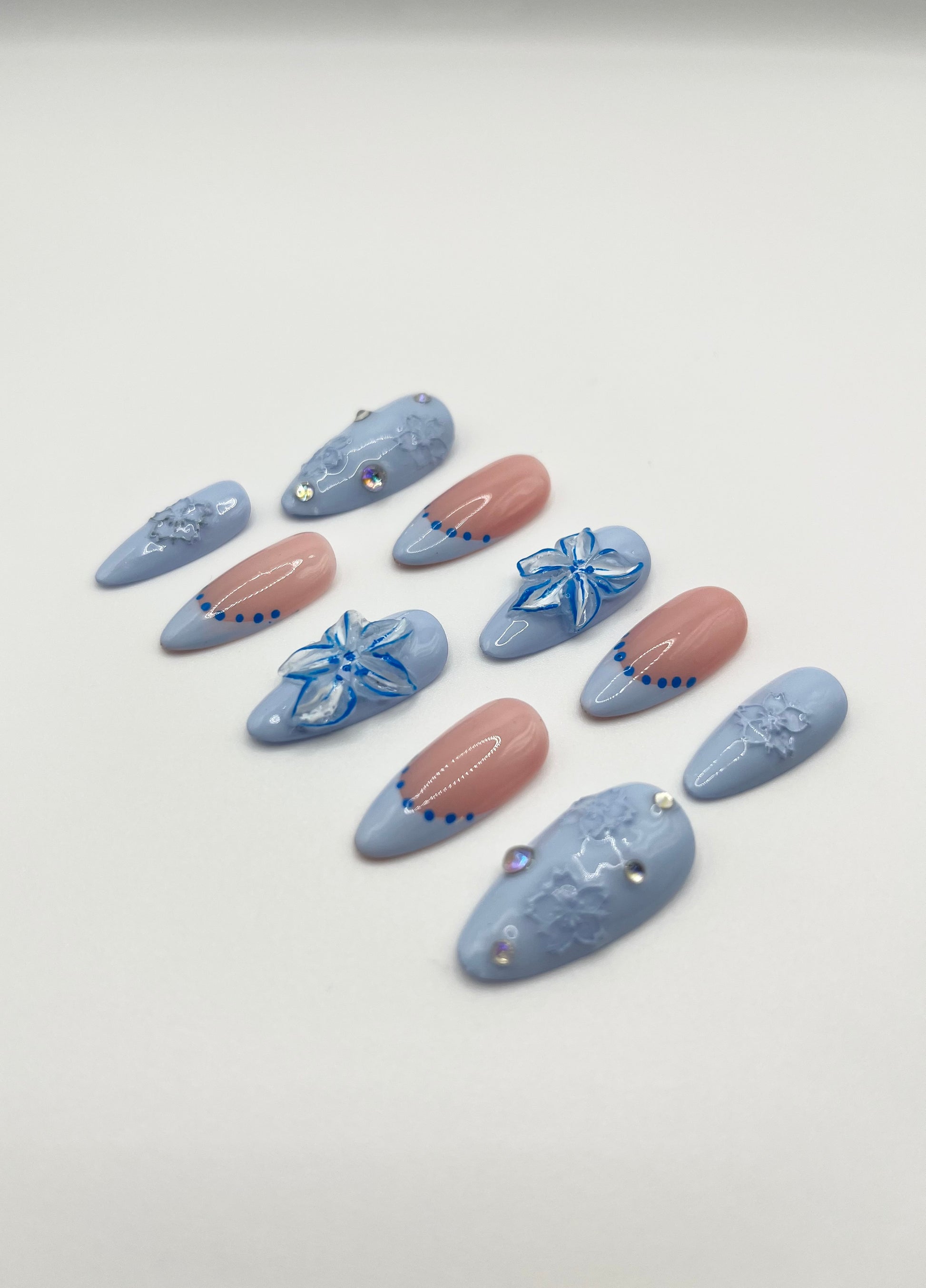 Each set includes: nail file, buffer, wooden cuticle pusher, nail stickers, and nail glue.