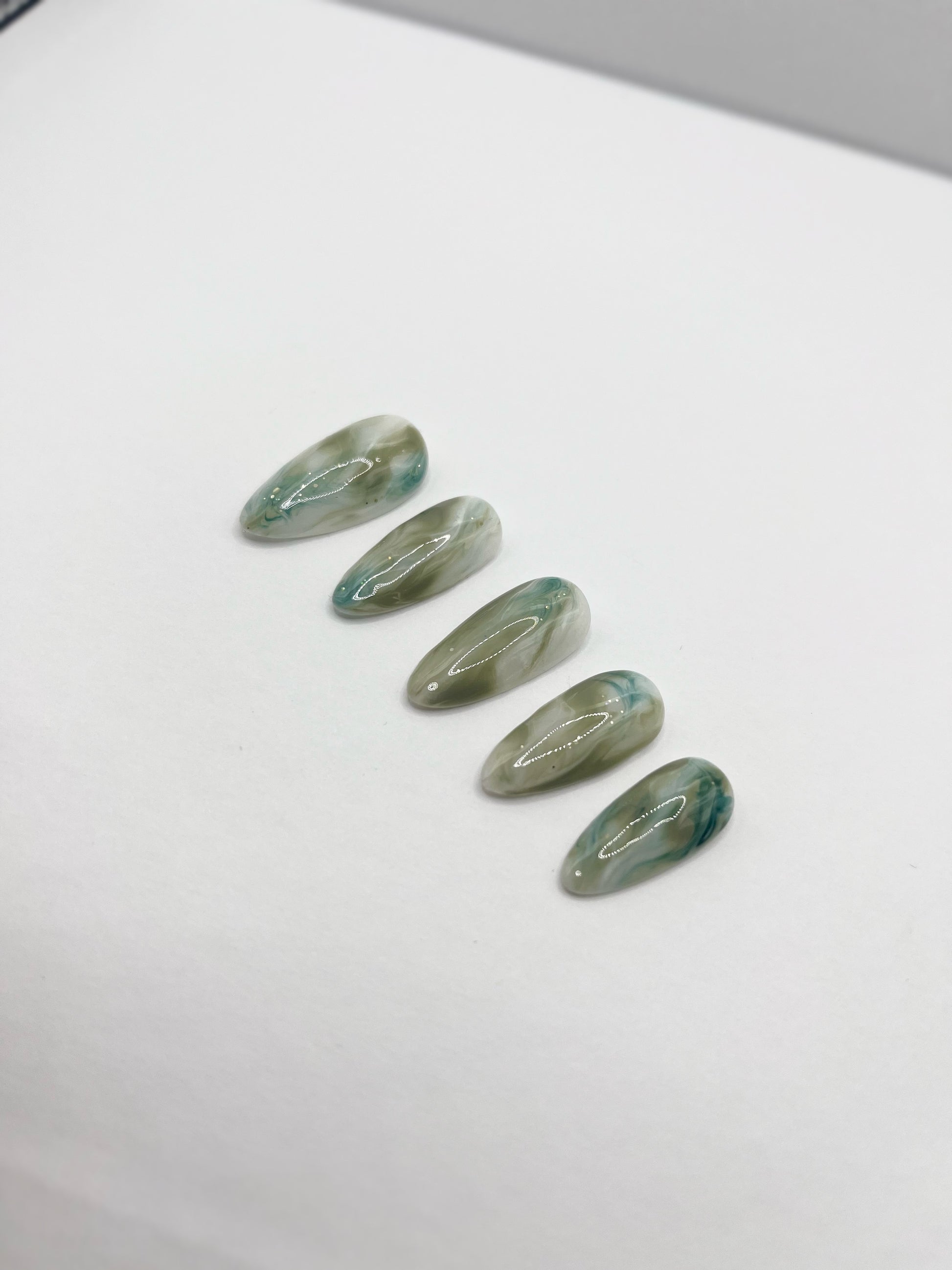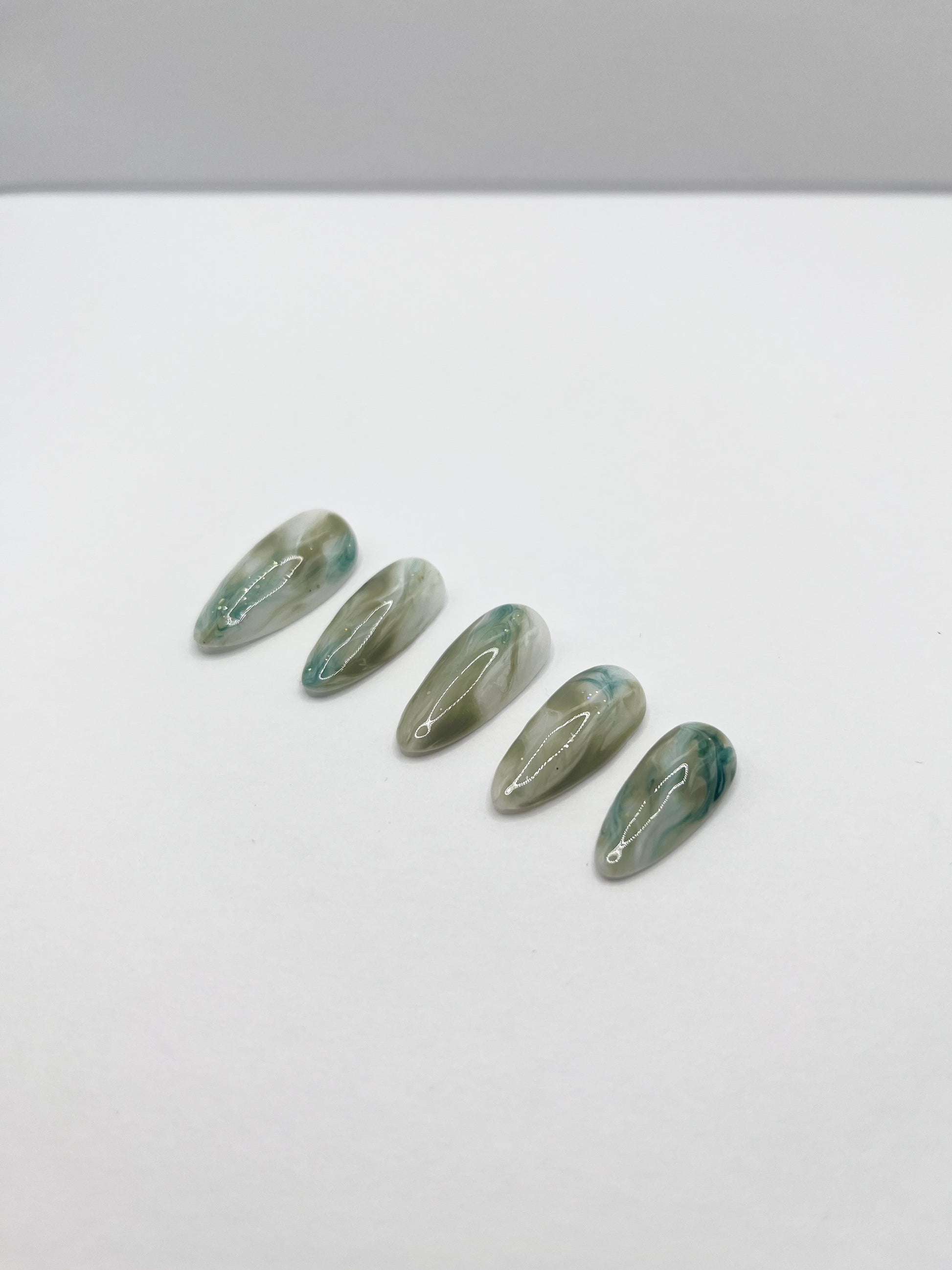 A subtle green-gray marble mix — elegant, earthy, and calming.